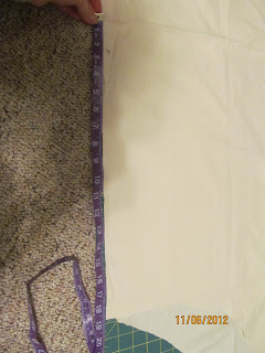 Step 1: Fold fabric in half, folded age nearest to you. If you want to go off of my dimensions I measured 10" up from the fold and 19" wide. (Once again, I do apologize for some of the pictures being rotated wrong. I changed them before I uploaded, but you know ... technology these days. sigh)